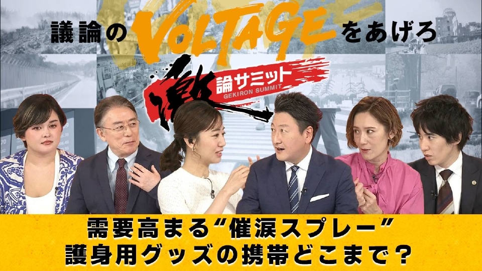 番組では、昨今の凶悪な事件を受けて需要の高まっている護身グッズ「催涙スプレー」に焦点を当て、弁護士の方など専門の方も交え、刑法の観点からみた違法性や催涙スプレーの必要性について議論をされています。